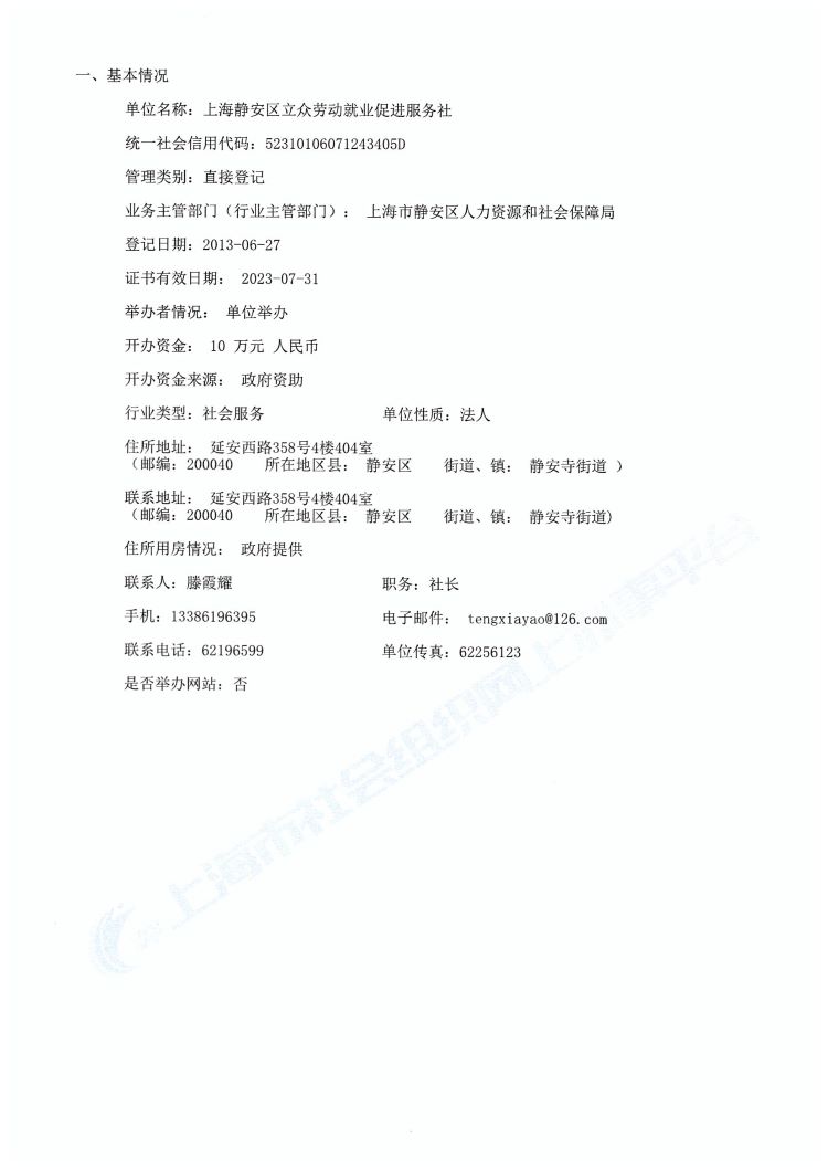 单位名称:上海静安区立众劳动就业促进服务社