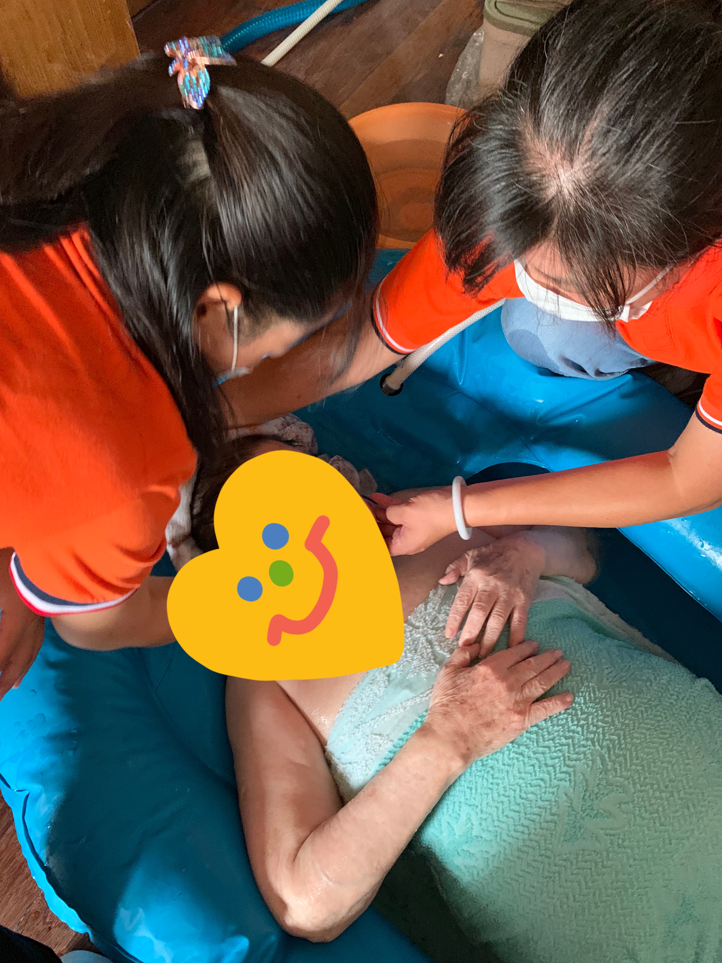 家住天目中路780号501室,93岁高龄杨阿婆身体状况欠佳,长期卧床,平时洗浴困难。今天上门为老人提供全介护助浴服务,老老人和家属非常开心、非常配合。老人的房间离进水、出水管有一定距离,妥善安置气垫浴盆有困难,拥挤的房屋给全介护助浴带来极大的难度,助浴团队工作人员只能将整套服务操作移至地面进行,团队成员以专业的护理助洗技艺和按摩手法,让老人尽情地享受助浴的舒适愉悦和轻松,老人会心的笑颜和家属感恩,让汗流浃背工作人员倍感欣慰。