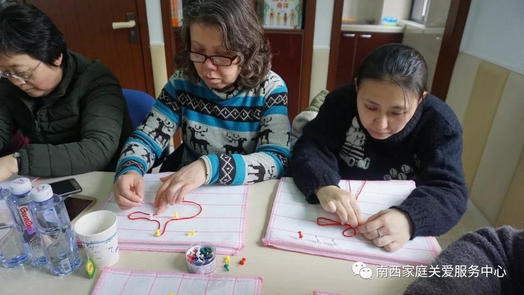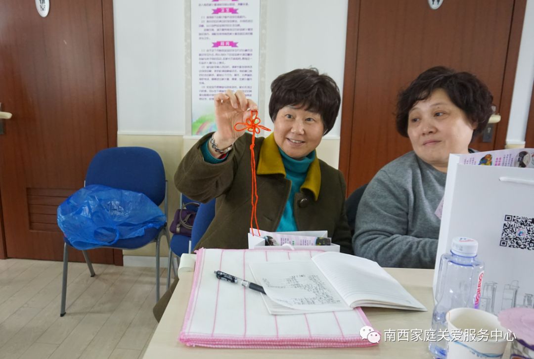 紧接着,老师拿出制作中国结的道具,人手一份,经过之前制作各种常见结的练习,大家跟着视频熟练的制作中国结,制作过程中,有部分志愿者未能顺利完成,老师与其他小伙伴均伸出援助之手,相互帮助,进而取得成功。
