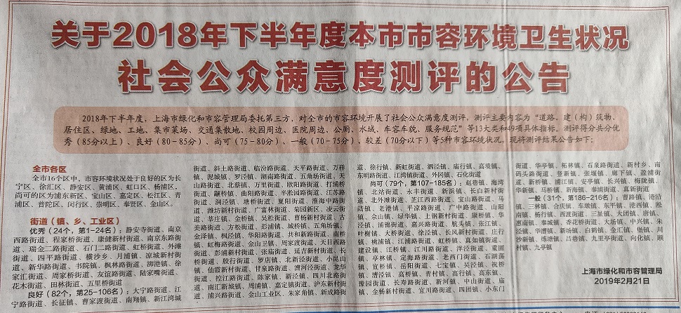 2018下半年度本市市容环境社会公众满意度测评公告度