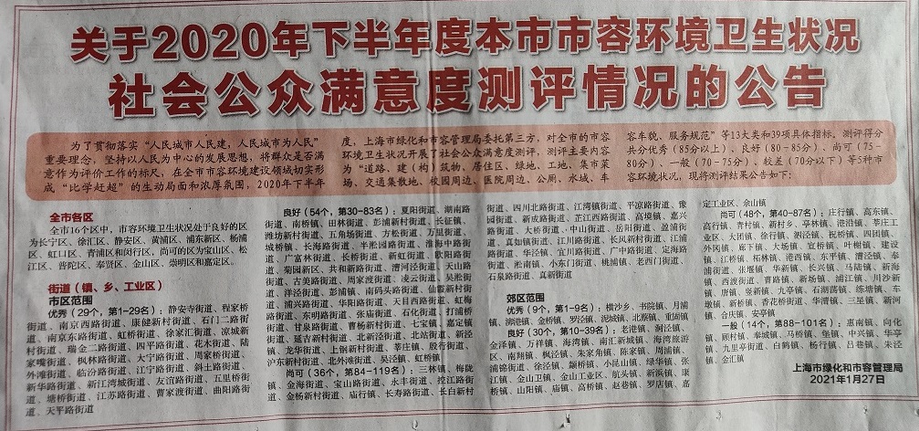 2020下半年度本市市容环境社会公众满意度测评公告度