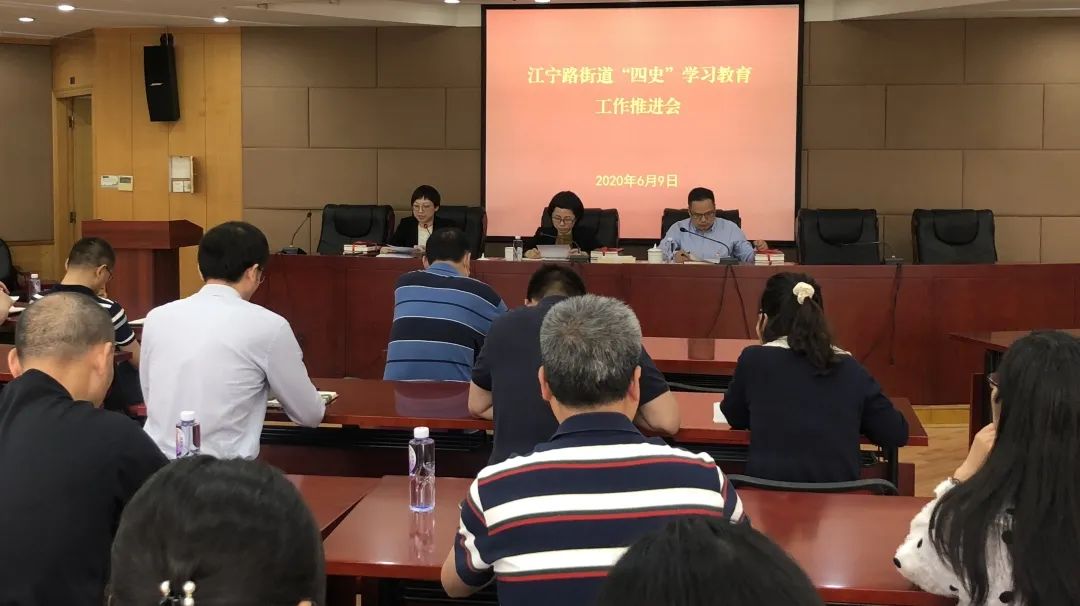 “四史”学习教育在路上 发布时间:2021/8/10 15:40:14 浏览次数:386 6月9日上午,江宁路街道召开“四史”学习教育工作推进会。街道党工委书记沈虹、街道办事处主任可晓林、街道党工委副书记朱凤出席会议,街道各居民区党总支书记、“两新”组织党支部书记、机关支部书记和部门负责人参加会议。会议由街道办事处主任可晓林主持。会上,街道党工委副书记朱凤解读了江宁路街道“四史”学习教育的实施方案,并就新下发的街道《党员学习手册》作了说明。