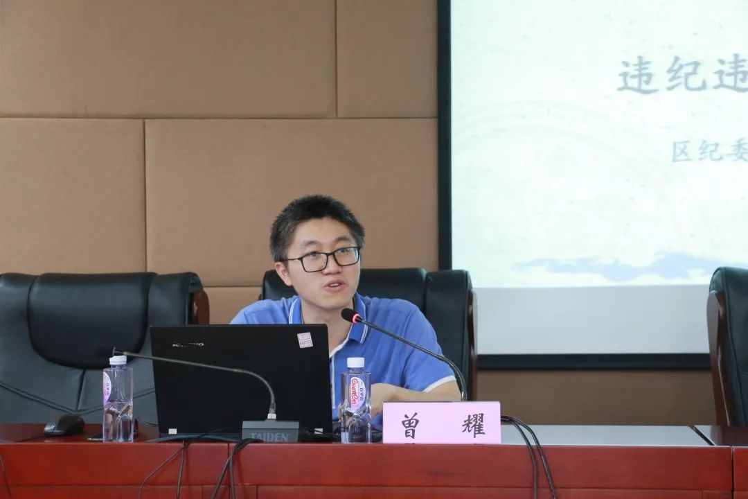 曾耀同志围绕查办违纪违法案件的范围及依据、近几年查办违纪违法案件的特点、查办违纪违法案件的警示意义三个方面,通过生动具体的案例,结合区域实际,讲解了当前的案件查办工作和推进廉政工作的重要性。