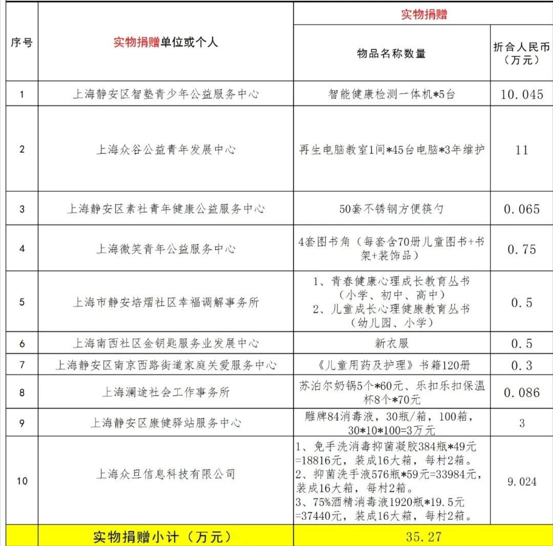 在此,静安区社会组织联合会向所有参与捐赠及虽未直接捐赠但共同发动宣传、给予关心关注的单位和个人致以最诚挚的感谢感谢你们对区社联会的信任与支持对社会力量参与脱贫攻坚的温暖践行未来,让我们继续“益”路同行~