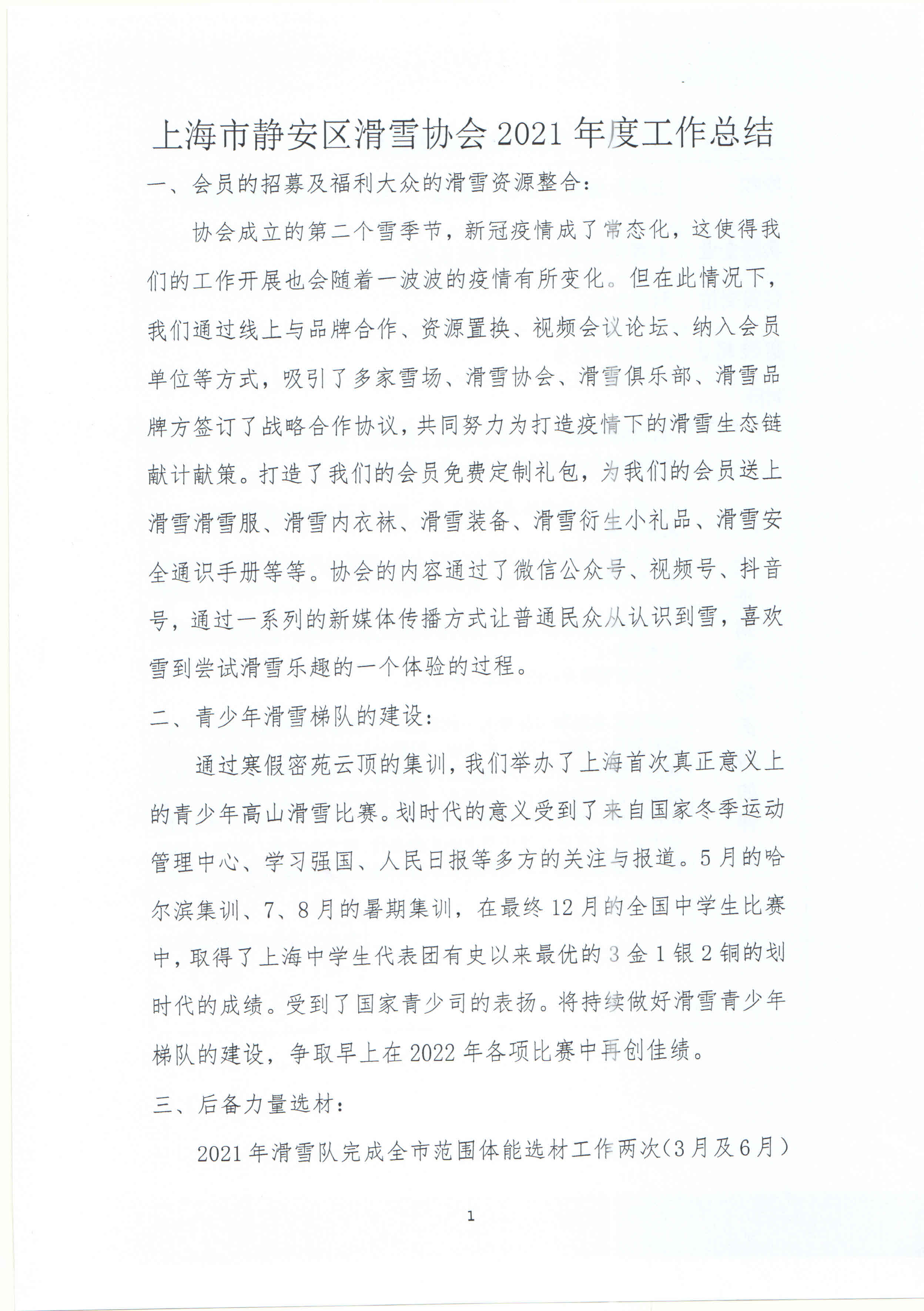 单位名称:上海市静安区滑雪协会